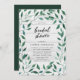 This rustic bridal shower invitation features Italian Ruscus with the words "bridal shower" in trendy script all against a pale wood background on the front and a dark green the back side.