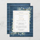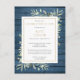 A personalised celebration of life remembrance invitation postcard featuring watercolor greenery on a rustic blue wood panels background. Designed by Thisisnotme©