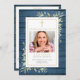 A personalised Christian order of service funeral memorial program featuring greenery on a rustic blue wood panels background. Designed by Thisisnotme©
