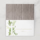 Made to match the rest of our Rustic Cross collection, these tent tags are adorned with a white cross surrounded with greenery leaves with gold lines to write in guests' names and table numbers. The backing has a faux wood background.