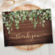 Send out Thank You notes to your friends and family from your wedding with these rustic wood with eucalyptus greenery, modern thank you cards. These rustic wedding thank you cards feature elegant eucalyptus greenery leaves, delicate gold script on county wood. Customise these wedding thank you cards with your personal message. These unique greenery wedding thank you cards will make a lasting impression, your guests, family and friends! COPYRIGHT © 2020 Judy Burrows, Black Dog Art - All Rights Reserved. Rustic Greenery Eucalyptus Gold Script Wedding Thank You Card