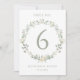 Greenery elegant botanical watercolor white flowers with eucalyptus leaves for rustic garden wedding table numbers.