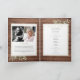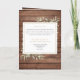 A personalised order of service funeral memorial folded program featuring greenery on a rustic wood panels background. Designed by Thisisnotme©