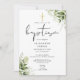 Rustic Greenery Leaves Elegant Monogram Baptism Invitation