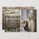 Rustic graduation party invitations featuring a country barn oak barrel background, a photo of the graduate, twinkle string lights, elegant watercolor greenery, the class year and modern white wording.