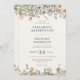 This rustic wedding invitation features watercolor top and bottom borders of delicate greenery. Personalise it with the names of the bride and groom in vintage charcoal grey typeface on an off-white background. The reverse side repeats the border design and provides space for wedding details on a solid off-white background, along with a QR code guests can scan to visit your website and RSVP, which saves the cost of printing and mailing separate RSVP cards.