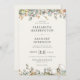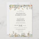 This rustic wedding invitation features watercolor top and bottom borders of delicate greenery. Personalize it with the names of the bride and groom in vintage charcoal gray typeface on an off-white background. Add the couple's initial on the back, encircled by a small matching watercolor wreath.