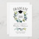 This rustic custom graduation announcement features a watercolor greenery wreath with a black grad cap and grey script typography on a white background. Personalise with your own details - name, class year, school and date. Congrats on your graduation!