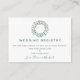 NewParkLane - Rustic, Personalised Wedding Registry Information Insert Card in Business Card size, with a beautiful green leaves wreath in watercolor, and an elegant green leaf / foliage pattern on the backside.