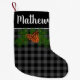 Rustic grey black buffalo plaid pine cone detail small christmas stocking