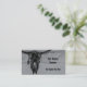 These business cards feature a rustic western grey black bull cow skull country rodeo cowboy custom horizontal design. Farmhouse printed texture with an old wild west style antique, cool, trendy, modern vintage farm animal. Image copyright Marg Seregelyi Photography.