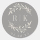 Rustic Grey Botanical Wreath Wedding Monogram Classic Round Sticker