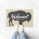Grey buffalo silhouette doormat with the word "Welcome" in white text as well as your family's name. Add some style and fun to your entryway with this rustic bold doormat. Get that Midwestern charm with this country elegant doormat.
