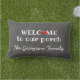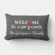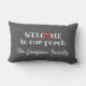 Rustic Grey Burlap Welcome to Porch Family Name Lumbar Cushion