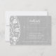 Rustic grey canvas with white lace design is an all-season collection perfect for your casual, rustic (and possibly barn!) wedding. Please contact the designer to request matching pieces. **This card is also available with meal choices. See link below to view collection.**