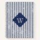Rustic Grey Linen & Navy Blue Stripes Monogram Notebook