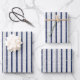 Rustic Grey Linen & Navy Blue Stripes Pattern Wrapping Paper Sheet