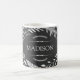 Cute modern holiday coffee mug features a whimsical rustic border or branches and leaves surrounding your monogram or other custom text on a faux burlap background. Click Customise It to add your own text and photos to create a unique one of a kind gift for friends and family.