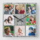 Rustic Grey Wood 8 Photo Collage Family Quote Square Wall Clock