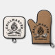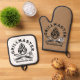 Rustic GRILLMASTER Custom Brown and White Oven Mitt & Pot Holder Set
