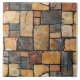 The arrangement of grouted flagstone tiles showcases rich, earthy tones. Each piece exhibits unique textures and colours, evoking a warm, natural ambiance. Ideal for enhancing living spaces or outdoor areas, these tiles add timeless elegance.