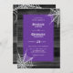Halloween wedding invitation, design purple and rustic wood. Creepy cobwebs on dark rustic background with orange, a design ideal for a Halloween wedding, October wedding, rustic goth wedding.