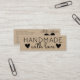 This cute, country and rustic business card is perfect for a crafter, Etsy artist, or boutique owner. It features simple and minimalist black modern and trendy thin typography with a handwritten script quote, "Handmade with love," on the front and two hearts with a heart on the back that says, "Made in the USA (or other country)," on top of a brown kraft paper background. It's modern, elegant, earthy, trendy, and unique; the perfect design to market and advertise your business to your customers.
