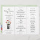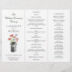 Tri-fold wedding program featuring a rustic watercolor bouquet of handpicked flowers in a milk bucket. On the back of the program there is a green summer watercolor wash background with a meadow of flowers, floral such as poppies, cornflowers and grass. Please Note: Changing the paper type may make the program difficult to fold.