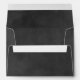 Custom A7 wedding envelopes feature white return address text with scroll design that you can personalise with a background that has a black chalkboard textured style appearance.