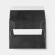 Custom wedding response envelopes feature white reply address text with scroll design that you can personalise with a background that has a black chalkboard textured style appearance.