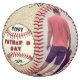 Rustic Happy Father`s Day 2 Photo Collage Softball. This rustic custom and personalised softball is a perfect gift for a dad or a new dad on a father`s day. The best dad ever two photo template softball. Personalise it with two photos and your names. The text is a trendy black and red typography and is written on a softball ball drawing. The background is a rustic beige texture.