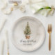 Rustic Happy Holidays Paper Plates designed with watercolor Christmas tree. Cava Party Design