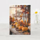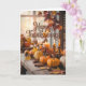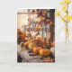 Cosy Autumn Pumpkin and Candle Table Scene.Send warm holiday wishes with this beautifully rustic “Happy Thanksgiving” card featuring a cosy autumn table setting adorned with small pumpkins, glowing candles, cinnamon sticks, and colourful fall leaves. Perfect for sharing gratitude and love with friends, family, and coworkers, this seasonal greeting card captures the heart of fall gatherings. The warm tones and inviting farmhouse aesthetic make it ideal for pairing with heartfelt handwritten messages to celebrate the season of thankfulness.