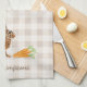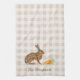 Rustic Hare And Carrots With Name Beige Gingham Tea Towel