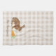 Destei's original watercolor illustration of a brown hare bunny together with some orange carrots on a rustic beige gingham pattern. There is also a personalizable text area for a name or other custom text. Ideal for Easter and spring, it also suits rustic, farmhouse, countryside and cottage styles.