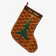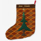 This soft fleece Christmas Stocking features a large stylised forest green pine tree topped w/a golden star set against a harlequin (diamond) design in rich rustic shades of chocolate brown, red maple, coffee and mango. Personalise the custom text field centred on the brown "cuff" on top! Printed on both sides.