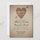 Rustic Heart Arrow Country Wedding Invitations. This unique design has a heart with an arrow going through it in a rustic wood design, with the bride and groom's initials inside the heart. The rest of the invitation has a vintage looking background of brown linen burlap printed design. Perfect for a country wedding.