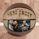Rustic You are my Hero Daddy Father`s Day 2 Photo Collage Basketball. The background is rustic beige and the text is a trendy typography. Personalised basketball for a dad. Add 2 photos and your names. You can change daddy to dad, pap, papa,.... Perfect gift for a father on a Father`s Day, birthday or Christmas and it`s a sweet keepsake.