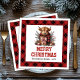 Bring cozy farmhouse charm to your holiday table with these beautifully designed Christmas napkins featuring an adorable watercolor Highland cow sitting in a rustic bucket, surrounded by vibrant holly berries, pine branches, and red poinsettias. The classic red and black plaid/buffalo/tartan pattern adds a warm seasonal touch, blending rustic country style with festive Christmas elegance.