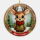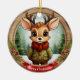 Rustic holiday character xmas reindeer gift for anyone, Ceramic Ornament! Christmas animal, festive wooden winter wildlife deer whimsical cartoon graphic tree hanging. Fun seasonal, unisex personalizable pine wood decor. Framed custom pinecone decoration. Woodland wonderland antlers Customizable white text saying "Merry Christmas" on a vibrant red ribbon – easily customize it with a loved one's name to make it truly personalized. Accents of pine cones and evergreen branches for a cozy look. The background showcases an enchanting snow landscape complete with a snowy trees. This two-sided artwork ensures seeing the adornment from every angle – illustration appears on both front and back, so it always looks complete no matter how it spins. Perfect for customized gifting or decorating, and you can transfer this unique fawn design to a variety of other products! Personalize and bring home this delightful doe keepsake today! 🦌🎄