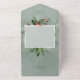 ALSO AVAILABLE WITH A QR CODE TO SCAN IN THE RSVP AREA OR WITHOUT DINNER SELECTION OPTIONS. This wedding invitation design features a beautiful frame of winter pine, holly, eucalyptus and other greenery with red holly berries. The background is a soft sage green that's distressed with white. Created by Simply Farmhouse Press.