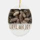Rustic Holiday Love and Joy Pine Cone Ceramic Tree Decoration