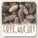 Festive, rustic pine cones accentuate this classic, elegant design wishing holiday Love and Joy.