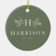 Rustic holiday monogram sage green newlywed photo ceramic ornament
