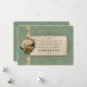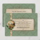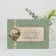 Rich Victorian inspired design featuring circular vignette of a winter scene on gold filigree frame with holly trim and satin ribbons on a soft hunter green damask background with Christmas verse on embellished parchment.