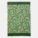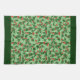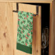 Rustic Holly and Berry Holiday Pattern on Green Tea Towel