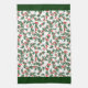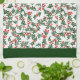 Rustic Holly and Berry Holiday Pattern on Green Tea Towel