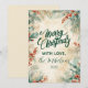 A festive rustic design framed with watercolor holly, pine branches, red berries, and frosted greenery. Perfect for sending warm holiday greetings with a timeless Christmas look.