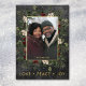 Introducing our enchanting foil Christmas card, where timeless elegance meets the beauty of the season. The rich charcoal black background, artfully distressed with soft white accents, sets a captivating tone. Your favourite photo will shine, surrounded by a delicate foil frame that adds a touch of refinement. The simple message speaks to the season's goal. Embrace the spirit of winter with a breathtaking frame of lush greenery, featuring holly adorned with rich red berries, mistletoe with its delicate white berries, and the timeless allure of green pine. This winter wonderland-inspired design captures the essence of the season and exudes natural grace and festive charm. Created by Simply Farmhouse Press.