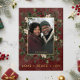 Introducing our enchanting foil Christmas card, where timeless elegance meets the beauty of the season. The rich burgundy background, artfully distressed with soft white accents, sets a captivating tone. Your favourite photo will shine, surrounded by a delicate foil frame that adds a touch of refinement. The simple message speaks to the season's goal. Embrace the spirit of winter with a breathtaking frame of lush greenery, featuring holly adorned with rich red berries, mistletoe with its delicate white berries, and the timeless allure of green pine. This winter wonderland-inspired design captures the essence of the season and exudes natural grace and festive charm. Created by Simply Farmhouse Press.
